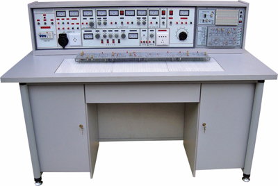 2、示教控制臺:分別控制12臺學(xué)生臺的電源。通用電路板演示屏立在實驗臺上,尺寸為160×70cm。用于講解、演示。
