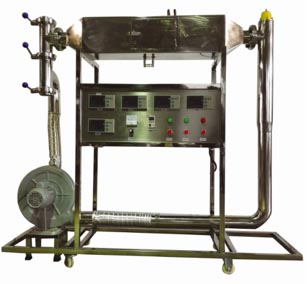 洞道室:L=1200,透視窗,小拉門。室內(nèi)與預(yù)熱段間多層不銹鋼均布器,干球、濕球溫度測(cè)點(diǎn),載物盤下連稱重傳感器。保溫層厚20,石棉材料。