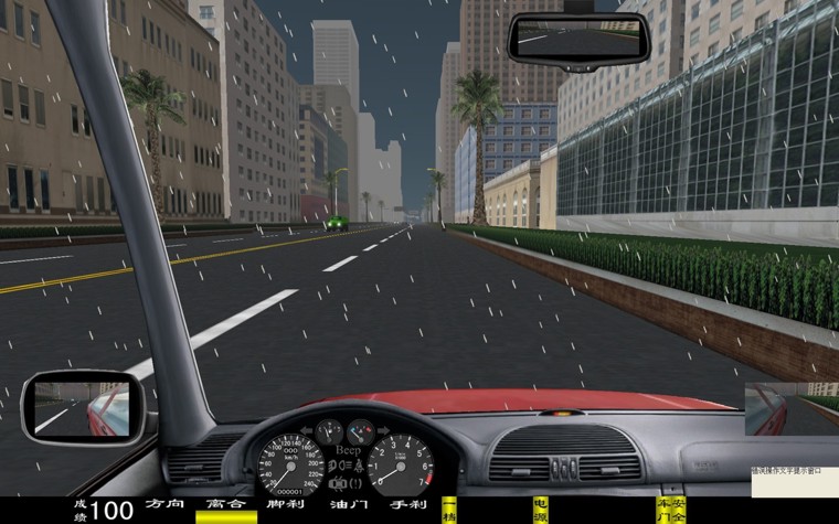 配套教材(本公司專門(mén)為汽車(chē)駕駛模擬器編制的《汽車(chē)駕駛基礎(chǔ)》配套教材,由上海教育出版社出版) 模擬車(chē)型:各型小車(chē)、皮卡、大貨車(chē)、大客車(chē)、農(nóng)用車(chē)、無(wú)級(jí)變速車(chē)等,用戶可根據(jù)需要任意選擇。 駕駛模擬器座艙 本駕駛模擬器座艙采用真車(chē)操作部件,為學(xué)員提供一個(gè)真車(chē)的操作環(huán)境。由于采用了當(dāng)前全新的科技成果,它可以在操作感、儀表顯示、聽(tīng)覺(jué)和視覺(jué)上逼真地再現(xiàn)真車(chē)駕駛時(shí)的工作環(huán)境和場(chǎng)景。其提供的訓(xùn)練場(chǎng)景按中國(guó)道路的實(shí)際情況設(shè)計(jì),可以分級(jí)設(shè)置,能訓(xùn)練學(xué)員的基本駕駛操作技術(shù)和處理緊急情況的應(yīng)變能力。汽車(chē)駕駛模擬系統(tǒng)能使學(xué)員快速掌握駕駛理論知識(shí)和基本操作技能,使學(xué)員的駕駛座艙既可以獨(dú)立使用,也可以通過(guò)數(shù)據(jù)通信單元與電腦主控臺(tái)配合使用。座艙單獨(dú)使用時(shí),可以實(shí)現(xiàn)汽車(chē)駕駛教學(xué)與訓(xùn)練功能;與電腦主控臺(tái)配合使用時(shí),整個(gè)系統(tǒng)可以實(shí)現(xiàn)由老師監(jiān)管任何一學(xué)員實(shí)時(shí)駕駛畫(huà)面,并能將每個(gè)學(xué)員檔案成績(jī)打印等功能。 中央監(jiān)控臺(tái) 上海華育教學(xué)設(shè)備有限公司生產(chǎn)的中央監(jiān)控臺(tái)由高級(jí)計(jì)算機(jī)、 19″ 顯示器、打印機(jī)、網(wǎng)絡(luò)交換機(jī)等組成。監(jiān)控計(jì)算機(jī)可以監(jiān)控任意一臺(tái)模擬器,監(jiān)視窗口將顯示與被監(jiān)視模擬器完全一樣的畫(huà)面,并實(shí)時(shí)圖形顯示其“五大”操作件——方向盤(pán)、離合器、腳制動(dòng)、油門(mén)及手制動(dòng)當(dāng)前的狀態(tài);另外檔位、喇叭、轉(zhuǎn)向燈、點(diǎn)火開(kāi)關(guān)等的狀態(tài)也通過(guò)圖示表示出來(lái)。監(jiān)控計(jì)算機(jī)可以查看聯(lián)網(wǎng)的每一臺(tái)模擬器當(dāng)前錯(cuò)誤操作的明細(xì)情況,并將訓(xùn)練成績(jī)進(jìn)行打。ㄖ袑W(xué)及勞技中心建議配備一臺(tái)中央監(jiān)控臺(tái)。 汽車(chē)駕駛模擬器駕駛界面截圖(部分)