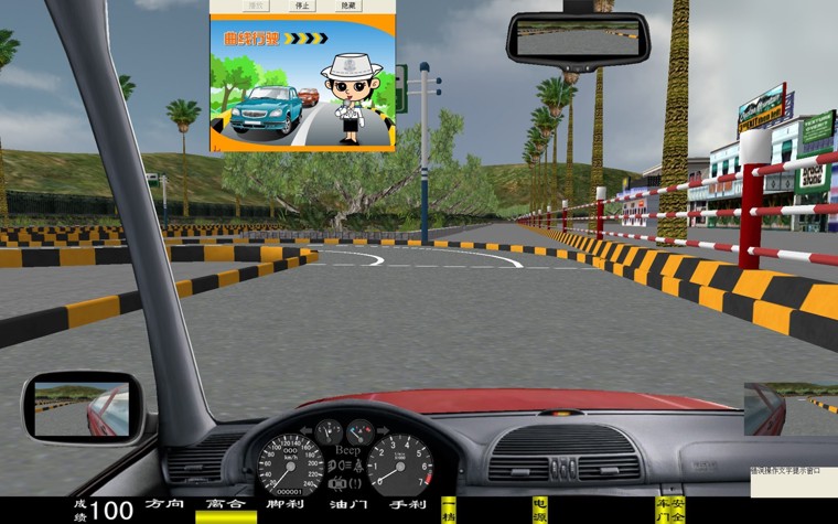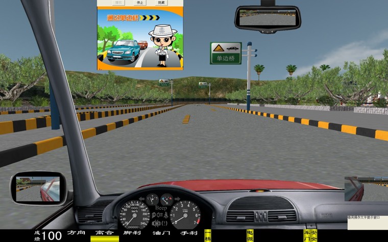 華育寬頻 HYM-9 型汽車駕駛模擬器是一種 80 度視角配 22 寸液晶彩顯的多功能新一代的主被動式汽車駕駛模擬器。它突破了原來在行駛十字路口向左拐的視線盲區(qū),行起車來更加方便逼真, 從而清楚的觀察車輛與路面的位置關(guān)系。是目前市場上絕對最新版的汽車駕駛模擬器軟件。 一、界面顯示 新增加 有: 轉(zhuǎn)向、 油門、 剎車、 離合器深淺進度; 檔位、 訓(xùn)練成績, 后視鏡(左、右、中)、 場景地圖顯示; 界面儀表盤上顯示有: 車速表、 發(fā)動機轉(zhuǎn)速表、 大燈、(遠光燈、近光燈、視寬燈)、 轉(zhuǎn)向燈、 安全帶提示燈、 車門關(guān)閉提示燈、 機油燈、 電瓶警告燈等。 在訓(xùn)練過程中、通過雙擊鼠標、可實現(xiàn)正視和俯視圖像駕駛之間切換。 三、本模擬系統(tǒng)界面里不同車型之間自由轉(zhuǎn)換,其車型有: 小轎車、 吉普車、 無級變速車(自動檔)、 農(nóng)用車、 大貨車、 大客車、 (車型等多達六種學(xué)員可以在模擬器上體會不同車型的駕駛體會與樂趣) 四、學(xué)員可以根據(jù)自己駕駛的熟練程度選項訓(xùn)練,分三級訓(xùn)練,即 1 、初級駕駛; 2 、中級駕駛; 3 、高級駕駛訓(xùn)練: 初級駕駛訓(xùn)練 :初級駕駛可分為六種車型和三種練習(xí)方法,即 1 、被動駕駛; 2 、原地訓(xùn)練; 3 、簡易道路等訓(xùn)練 中級駕駛訓(xùn)練 :可選擇場景內(nèi)的相應(yīng)功能訓(xùn)練:車輛的數(shù)量、車型、道路、天氣等。 高級駕駛訓(xùn)練 :可選車輛的數(shù)量、車型、道路、天氣及 交通部規(guī)定的九項專項訓(xùn)練 即: 1 通過連續(xù)障礙、 2 通過單邊橋、 3 直角轉(zhuǎn)彎、 4 側(cè)方位停車、 5 上坡定點停車與坡道起步、 6 限速通過限寬門、 7 百米 加減檔、 8 起伏路駕駛、 9 曲線行駛等 。場景內(nèi)最多可達 60 輛其他車輛,達到模擬逼真的交通流狀況。 訓(xùn)練氣候 面有:“