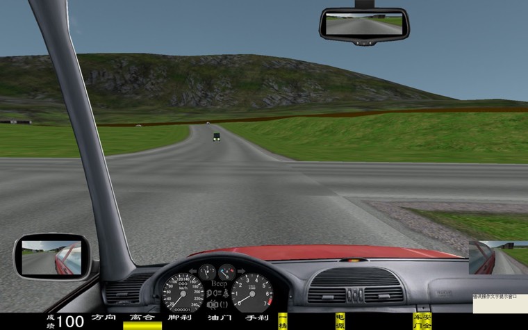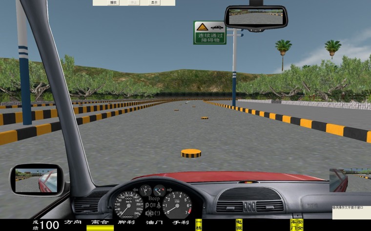 炫目訓(xùn)練” “白天”、“雪天”、“霧天”、“雨天”、“黑夜”,體會不同天氣狀況下的駕駛特點(例如,晴天炫目道路訓(xùn)練有早上及傍晚的炫目駕駛;雪天路面極滑;霧天視線極其不好;夜間駕駛會車時要遠近燈光的切換等)。 學(xué)生駕駛艙 座機由駕駛座、視屏彩電、汽車五大操作系統(tǒng)、核心計算機、高級進口傳感器、數(shù)據(jù)采集板等組成,各操作部件通過傳感器,經(jīng)數(shù)據(jù)傳感板傳輸。 駕駛模式 被動式:被動式駕駛適用于初學(xué)的學(xué)員,學(xué)生可以按照電腦語音提示進行規(guī)范的操作練習(xí)。 主動式:主動式駕駛與實際車輛相同。 功能 主視屏:顯示駕駛前方道路與周圍路況、使學(xué)生能感覺身在駕駛室操作著運行中的汽車。并顯示檔位、成績分數(shù)。 后視鏡:能達到與真車相同的模擬效果。可升降。 模擬儀表:顯示車速、里程、發(fā)動機轉(zhuǎn)速。并且可自行決定關(guān)閉或開啟。 特殊功能:通過鼠標操作可由正常駕駛室駕駛模式切換到以府視式駕駛模擬 . 訓(xùn)練場景科目: ⑴ 一般道路; ⑵ 高速公路; ⑶ 城市道路;(包括:行人、自行車、其它車輛、雙黃線、崗?fù)ぁ⒕、紅綠燈、轉(zhuǎn)盤、交通標志標線等。) ( 4 )炫目道路 ( 5 )泥濘道路 ( 6 ) 山區(qū)道路; ( 7 ) 曲線穿樁、場地倒庫; ( 8 )“ 8 ”字型路; ( 9 ) 直角彎路、十字路口、丁字路口、匝道等。 ( 10 ) 蛇形路; ( 11 ) 就位停車; ( 12 ) 順行停車; ( 13 )雙邊橋; ( 14 )單邊橋; ( 15 )單凸橋; ( 16 )橫斷橋; ( 17 )騎越障礙; ( 18 )立交橋; ( 19 )隧道。 天氣 一般道路可選擇四種天氣:白天、雪天、霧天、雨天、黑夜。 畫面選擇 可以選擇“打開”或“關(guān)閉”:后視鏡、向?qū)У貓D、錯誤提示、成績等。 其它車輛選擇 各道路分 4 種數(shù)目選擇: 3 至 60 輛。 車型選擇 在訓(xùn)練中有六種車型:小轎車、吉普車、無級變速車(自動檔)、大貨車、大客車、農(nóng)用車等。 汽車模擬技術(shù) 汽車多自由度數(shù)學(xué)模型,實現(xiàn)汽車轉(zhuǎn)向、制動和加速的逼真模擬。 測試調(diào)整功能 傳感器測試:方向機的測試、離合器的測試、油門的測試、制動器的測試(腳剎)、手制動的測試、變速器各檔位的測試、鳴號、點火、開鎖。只要打開測試界面便一目了然。并可作學(xué)員操作曲線學(xué)仿 第二節(jié) 汽車駕駛模擬器軟件技術(shù)指標 ● 軟件增加 ※界面儀表盤上顯示有: 車速表、發(fā)動機轉(zhuǎn)速表、大燈、(遠光燈、近光燈、視寬燈)、轉(zhuǎn)向燈、安全帶提示燈、車門關(guān)閉提示燈、警告燈及機油電瓶燈等 , 與硬件配合,錯誤操作進行扣分并具有語音提示。 ※界面顯示新增加: 80 度全新視角寬頻模擬駕駛、轉(zhuǎn)向、油門、剎車、離合器深淺進度顯示;檔位、訓(xùn)練成績,后視鏡(左、右、中)、場景地圖顯示 ; 與硬件配合。 ※語言提示新增加: 壓雙黃線,闖紅燈提示;并在每次駕駛訓(xùn)練后系統(tǒng)自動給予評分即“成績優(yōu)秀”“成績中等”“成績不合格”的提示音及字幕。 汽車駕駛模擬器駕駛模擬軟件采用汽車多自由度數(shù)學(xué)模型,實現(xiàn)汽車轉(zhuǎn)向、制動和加速的逼真模擬;另外利用最新的計算機技術(shù),實現(xiàn)真實的三維場景及逼真的聲音模擬。 1 駕駛模式選擇 單機訓(xùn)練:單臺駕駛艙獨立訓(xùn)練,訓(xùn)練時候場景內(nèi)部的其他車輛、自行車、行人等由系統(tǒng)根據(jù)交通規(guī)則及交通模型發(fā)出,模擬真實的交車、會車、跟車等。 被動駕駛:系統(tǒng)根據(jù)已經(jīng)配置好的被動駕駛文件播放視頻以及操作語音提示, 學(xué)員可以在沒有教練指導(dǎo)下按照操作語音提示學(xué)習(xí),學(xué)習(xí)正確的操作順序。被動駕駛文件可以自行配置,以便根據(jù)自己的特點配置出符合訓(xùn)練大綱要求的被動駕駛文件。被動駕駛功能對初學(xué)駕駛的學(xué)員來說非常有用,如果學(xué)員沒有按照提示操作,系統(tǒng)將報錯并扣分。 網(wǎng)絡(luò)互動:通過中央控制臺可以最多連接 25 臺駕駛艙,實現(xiàn)聯(lián)網(wǎng)訓(xùn)練,場景中可以看見其他駕駛艙所駕駛的車輛,并看見其他駕駛艙所駕車輛的轉(zhuǎn)向燈、剎車燈以及聽見其他車輛的喇叭。 2 訓(xùn)練場景科目 訓(xùn)練場景包括: 一般道路 :場景中有鐵道路口、單行道、限定距離換檔等內(nèi)容。 高速公路 :場景中有超車道、行車道、出口等交通標志牌,車距確認、隧道、高速公路出入口等內(nèi)容。 城市道路 :場景中有立交橋、十字路口、丁字路口、環(huán)形島、環(huán)城路、行人橫穿道路等內(nèi)容。 炫目道路: 使學(xué)員在晴天強光照耀下體會行駛中車距的確認、會車觀察車輛與來車的位置關(guān)系、行人橫穿道路等訓(xùn)練項目。 危險道路 :危險場景中設(shè)置有行人突然橫穿公路、路口突然出現(xiàn)橫穿自行車、路口突然出現(xiàn)汽車、道路維修等危險狀況。 場地訓(xùn)練 :曲線穿樁、倒車移位、 “ 8 ”字型路、直角彎路、蛇行路、就位停車、順心停車、斜位停車、雙邊橋、右單邊橋、左單邊橋、單凸橋、雙凸橋、橫斷路、騎越障礙、山區(qū)道路、坡道。 場地 9 項 :通過連續(xù)障礙、通過單邊橋、直角轉(zhuǎn)彎、側(cè)方位停車、上坡定點停車與坡道起步、限速通